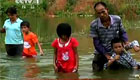 廣西乘竹筏上學遭禁 家長改帶孩子趟水