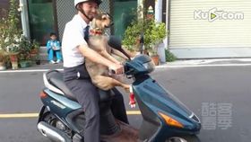 聰明狗狗亮“絕活”陪主人坐摩托