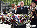 圖:法國(guó)總統(tǒng)希拉克向無(wú)名烈士墓敬獻(xiàn)花圈