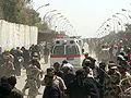 圖文報(bào)道:救護(hù)車停在巴格達(dá)踩踏現(xiàn)場的人群中