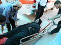 圖文報(bào)道:一名受傷的婦女被送進(jìn)醫(yī)院