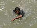 伊拉克警方及救援人員用小船在河中打撈尸體