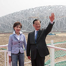 連戰(zhàn)夫婦參觀建設(shè)中的“鳥巢”