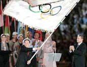 北京奧運(yùn)會(huì)籌備大事回顧 王岐山在雅典接過奧運(yùn)會(huì)旗 |