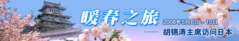 5月6日-10日,中國(guó)國(guó)家主席胡錦濤對(duì)日本進(jìn)行了為期五天的國(guó)事訪問(wèn)。[詳細(xì)]