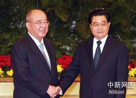 圖:中共中央總書(shū)記胡錦濤會(huì)見(jiàn)江丙坤一行