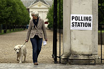 圖:英國(guó)選民在大篷車內(nèi)投票