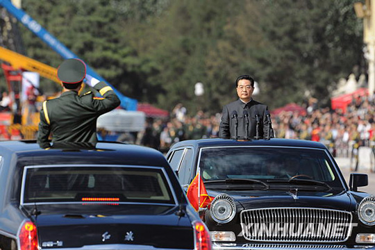 國(guó)慶閱兵:胡錦濤乘紅旗車檢閱