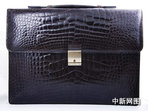 金色配飾亮面鱷魚皮商務(wù)公文包