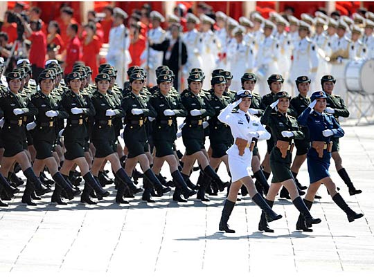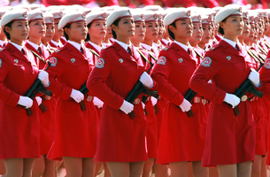 圖:靚麗女民兵成國慶慶典亮點(diǎn)