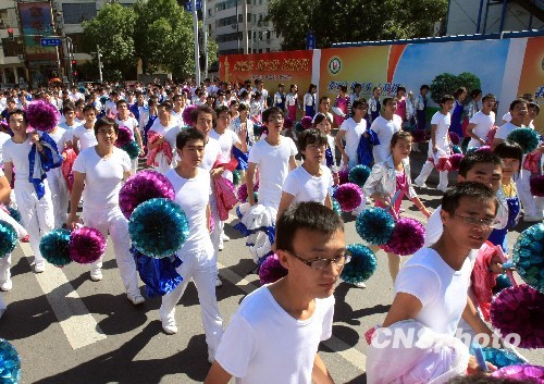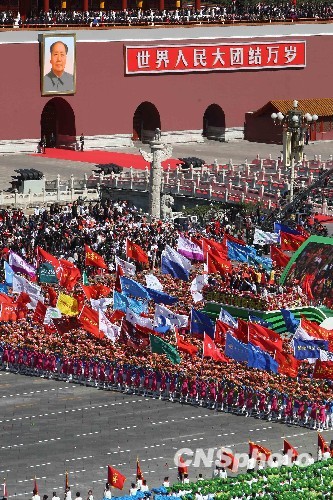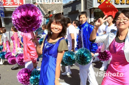 國慶花絮:參加游行的學(xué)生方隊(duì)