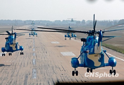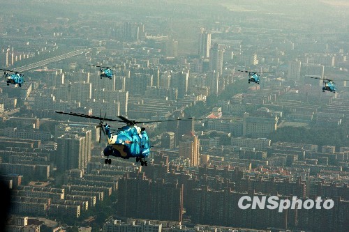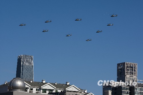 國慶閱兵:直升機(jī)梯隊(duì)飛過北京上空