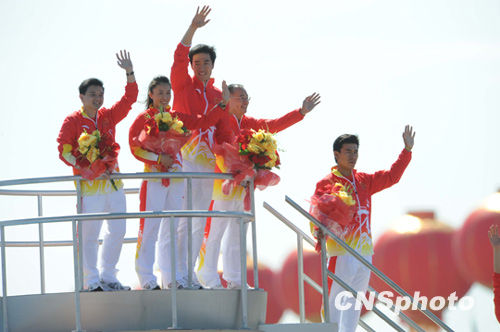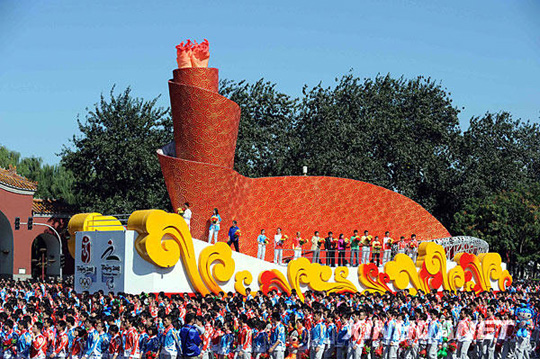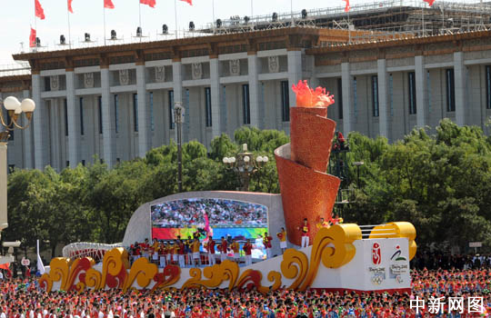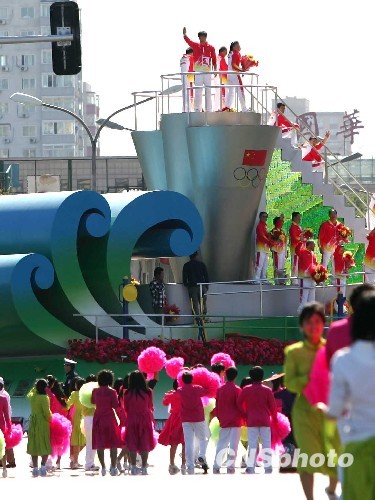 圖:劉翔、李寧等體育明星亮相游行彩車