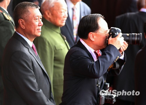 國慶慶典:曾蔭權(quán)在天安門城樓拍照