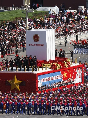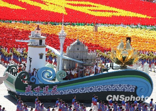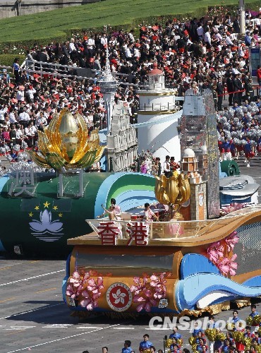 國慶慶典:廣東彩車亮相游行隊(duì)伍