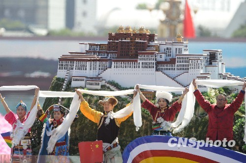國慶慶典:西藏彩車亮相群眾游行隊(duì)伍