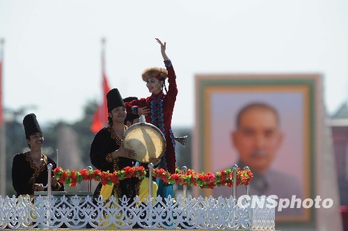 國慶慶典:新疆彩車亮相群眾游行隊(duì)伍