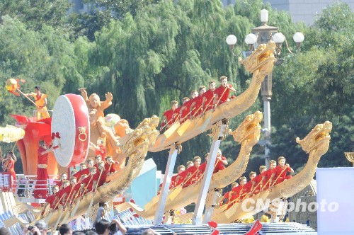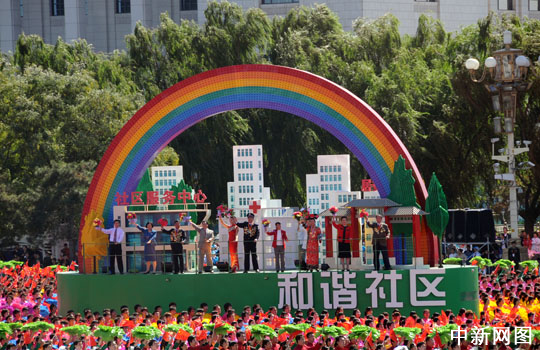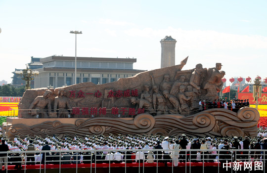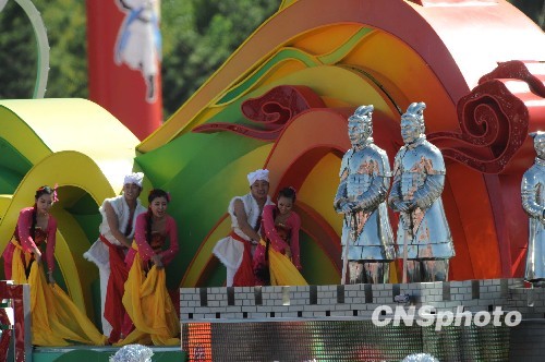 國慶慶典:陜西彩車亮相群眾游行隊(duì)伍
