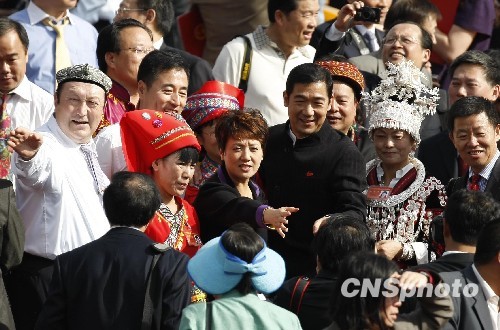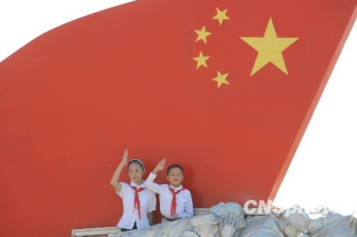 圖:神七航天員亮相群眾游行隊(duì)伍