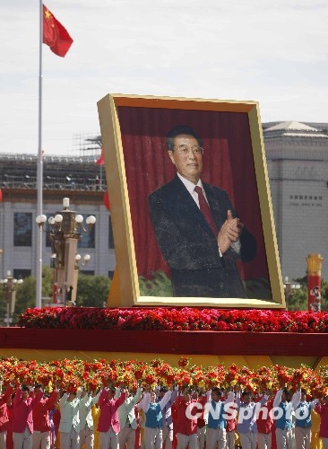 圖:胡錦濤畫像出現(xiàn)在游行隊(duì)伍中