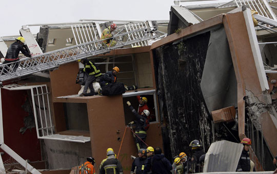 圖:智利強(qiáng)烈地震 救援隊(duì)廢墟中搜救幸存者(2)