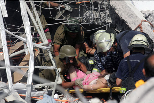 圖:智利強(qiáng)烈地震 救援隊(duì)廢墟中搜救幸存者
