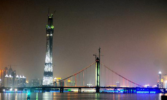廣州電視觀光塔(又稱廣州塔、廣州新電視塔),建于廣州市海珠區(qū)赤崗塔附近地面,距離珠江南岸125米,與海心沙島及廣州新電視塔夜景珠江新城隔江相望。是一座以觀光旅游為主,具有廣播電視發(fā)射、文化娛樂和城市窗口功能的大型城市基礎(chǔ)設(shè)施,將為2010年在廣州召開的第十六屆亞洲運動會提供轉(zhuǎn)播服務(wù)。該塔仍然在建,由上海建工集團負(fù)責(zé)施工,預(yù)計2009年9月竣工?⒐ず蟮膹V州電視觀光塔整體高度達(dá)到610米,將取代加拿大的西恩塔成為世界第一高塔,也將成為廣州的新地標(biāo)。其中塔身主體454米,天線桅桿156米。