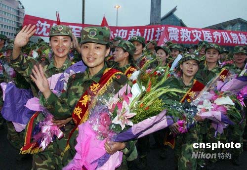 圖:沈陽軍區(qū)抗震救災(zāi)醫(yī)療隊返沈