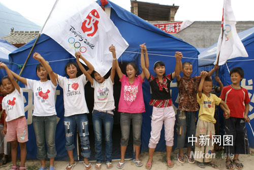 圖:重災(zāi)區(qū)孩子們用歌聲祝福奧運(yùn)平安