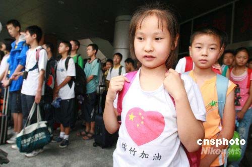 圖:四川地震災(zāi)區(qū)學(xué)生南寧開學(xué)上課