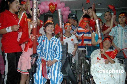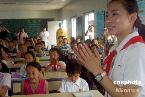 圖:李寧、劉璇等奧運冠軍慰問災區(qū)兒童