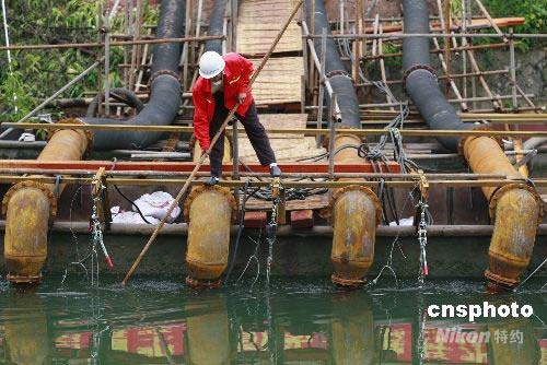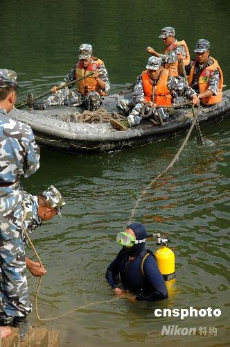 圖:海軍陸戰(zhàn)隊“蛙人”在震區(qū)危險水庫排水減壓