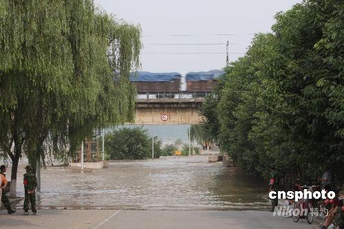 圖:綿陽鐵路橋嚴陣以待唐家山堰塞湖泄流