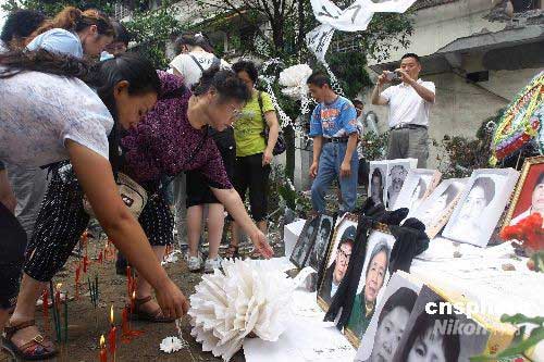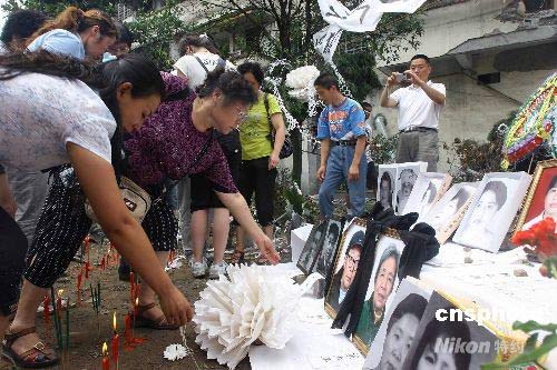 圖:都江堰民眾自發(fā)祭奠遇難親友