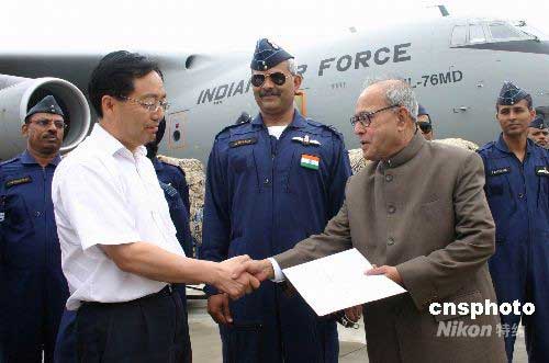 圖:印度外長慕克吉慰問四川災區(qū)