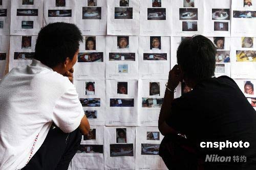 圖:都江堰民眾沉痛悼念遇難親友