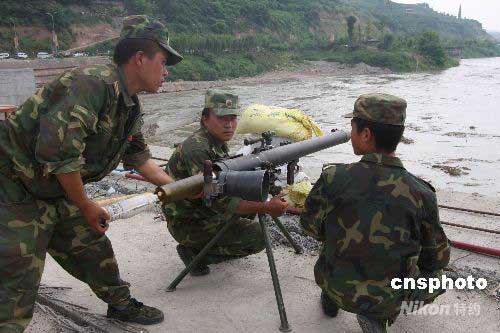圖:部隊炮擊唐家山堰塞湖危險漂浮物