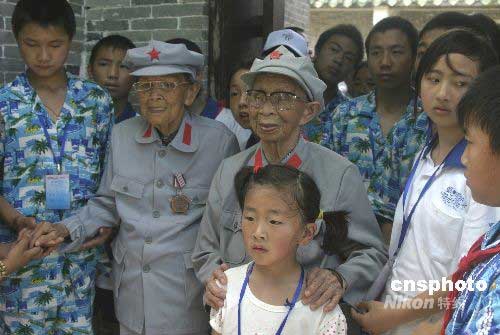 圖:98歲紅色娘子軍看望四川災區(qū)孩子