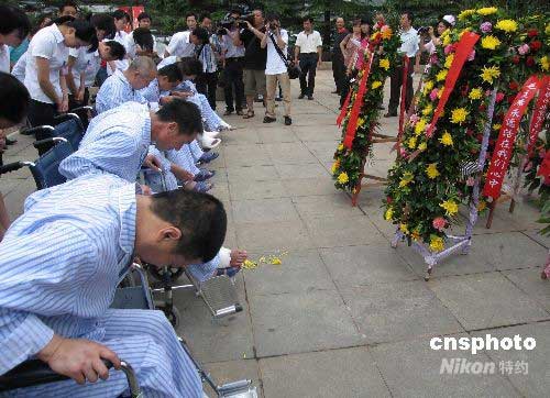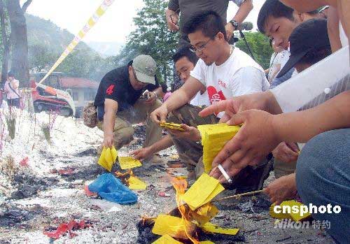 圖:志愿者祭奠北川中學遇難學生