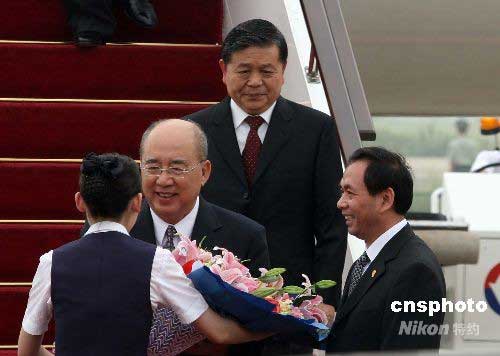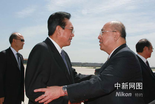 圖:中國(guó)國(guó)民黨主席吳伯雄一行抵達(dá)北京