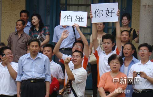 大學(xué)生在中山陵迎候吳伯雄 打出"伯雄你好"標(biāo)語(yǔ)