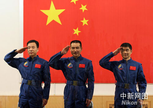 圖:三名“神七”航天員受命出征
