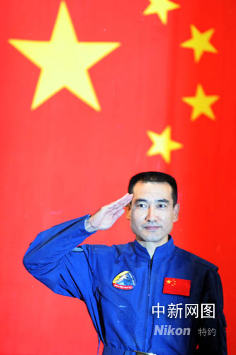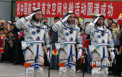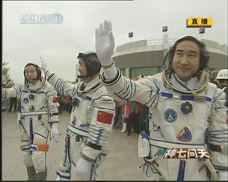 神舟七號航天員向觀眾敬禮