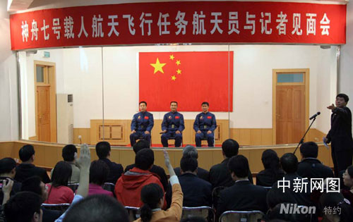 神舟七號航天員與記者見面會現(xiàn)場