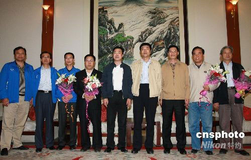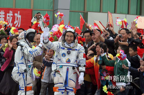 圖:完成“神七”發(fā)射后首批航天人返京