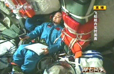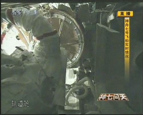 圖:翟志剛在軌道艙做準備