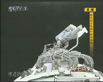 圖:神舟七號航天員翟志剛成功出艙(3)