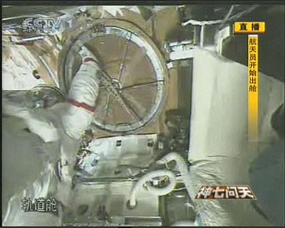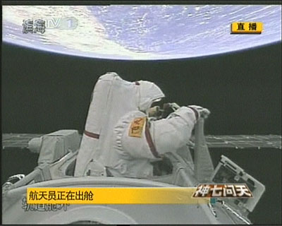 圖:“神七”航天員翟志剛走出艙外開始實施出艙活動