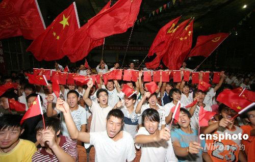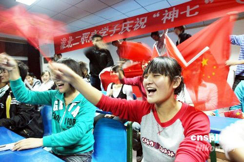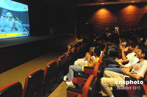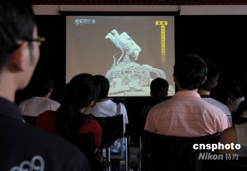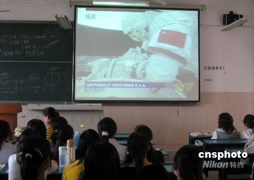 圖:廈門大學學生關(guān)注神七航天員翟志剛出艙