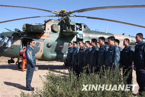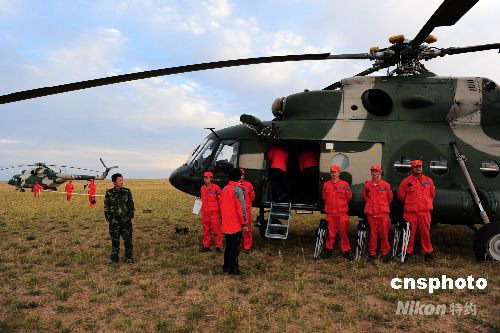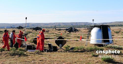 圖:"神七"返回艙搜救任務(wù)人員進行最后演練
